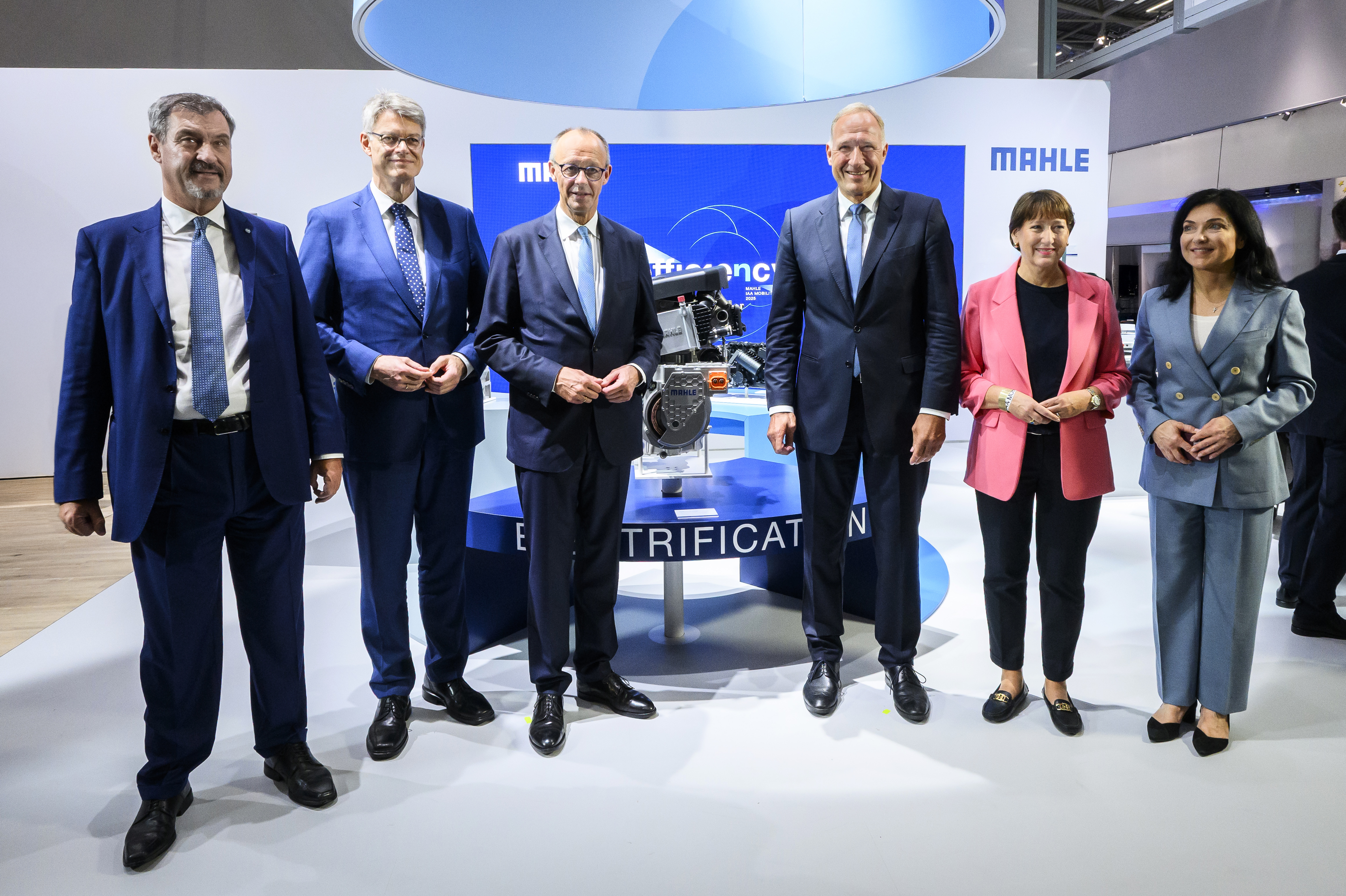 Bundeskanzler Friedrich Merz besuchte am Dienstag im Rahmen der Eröffnung der IAA Mobility in München den Automobilzulieferer MAHLE. CEO Arnd Franz präsentierte ein hocheffizientes Range Extender System für batterieelektrische Fahrzeuge. Es besteht aus einem besonders kompakten Hochvoltgenerator, der ohne Seltene Erden auskommt, und einem kleinen effizienten Verbrennungsmotor. Das System verlängert die Leistung der Hochvolt-Batterie eines E-Fahrzeugs und ermöglicht mit nur einer Batterieladung Reichweiten von bis zu 1.350 Kilometern. Mit Blick auf die CO2-Regulierung in Europa betonte Franz, dass der Weg zur Technologievielfalt auch in Europa geebnet werden müsse. „Wir brauchen Freiraum für Ideen, Freiraum für den Wettbewerb der Technologien“, sagte er. Bundeskanzler Merz zeigte sich begeistert von der Range Extender-Technologie. Er wolle sich dafür einsetzen, dass Technologien von deutschen Unternehmen in Europa auf die Straße kommen. Die Politik gebe das Ziel vor: Klimaneutralität. Den Weg dorthin müssten die Ingenieure bestimmen, nicht die Politik, sagte Merz.