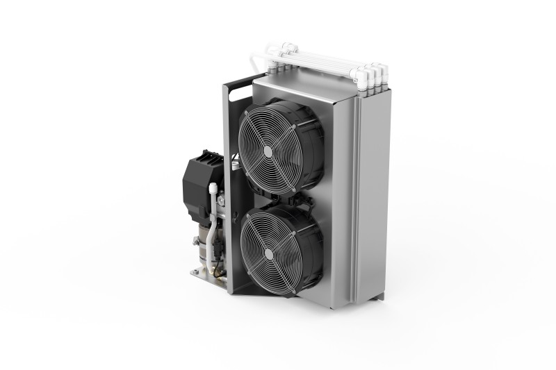 For fast charging stations, such as those found at service stations and off-motorway service areas, MAHLE has developed an innovative cooling module that dissipates the waste heat of the cable and thus enables optimal fast charging performance. It consists of heat exchangers, pumps and fans and can be used without hesitation in ambient temperatures ranging from -35 to +50°C without sacrificing performance. MAHLE also uses a specially programmed control that adjusts the various components to the respective performance and efficiency requirements of the charging station.